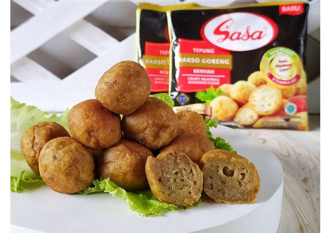 - Sediakan tepung bakso goreng, saya merk Sasa.