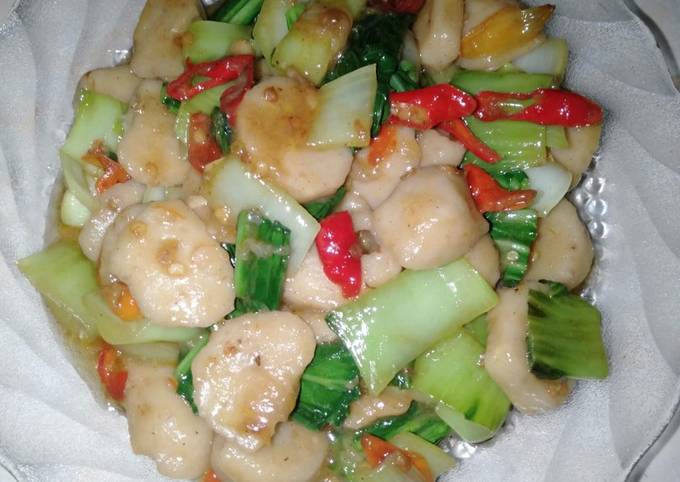 Tumis bakso pakcoy. Jika ingin menambah garnish, beri sedikit bawang putih goreng di atasnya. Sayuran pakcoy•dada ayam fillet (di rebus) dan potong kecil•air kaldu dr rebusan ayam•garam•gula pasir•merica bubuk•bawang putih di cincang halus•saus tiram. Ketika ditumis, pakcoy bakal menyerap bumbu dengan sempurna, sehingga terasa nikmat.