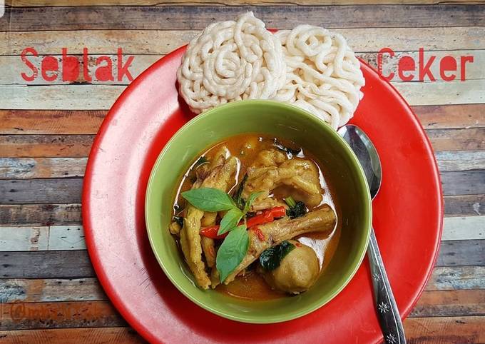 - Seblak ceker siap dihidangkan bersama kerupuk aci..